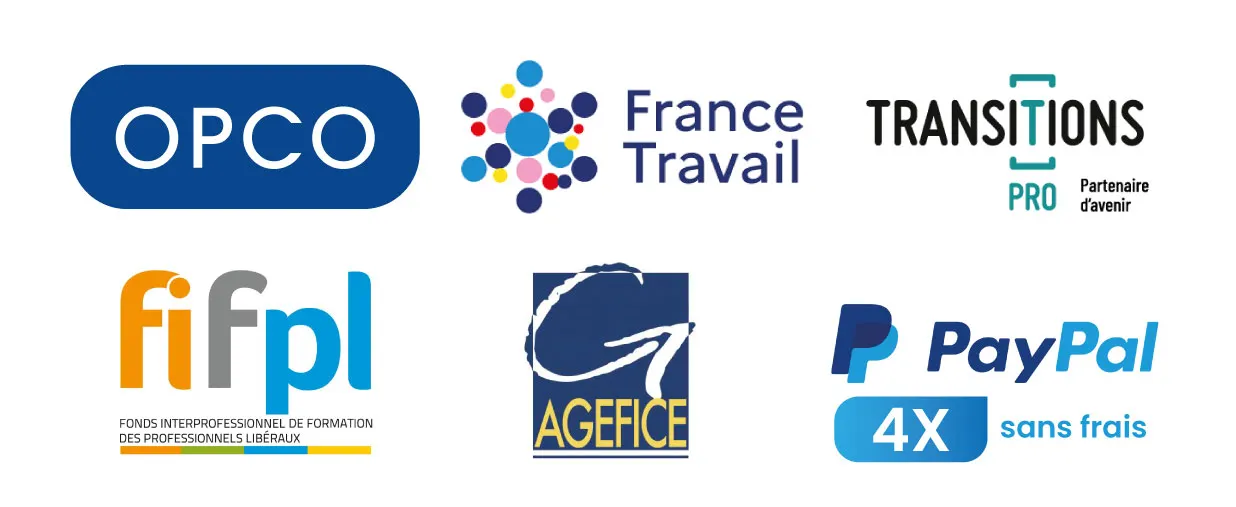 Profitez également de solutions de financement adaptées, incluant le paiement en 4x sans frais Paypal ou la prise en charge par votre OPCO, France Travail, Transitions Pro, FIFPL ou AGEFICE, selon votre éligibilité.