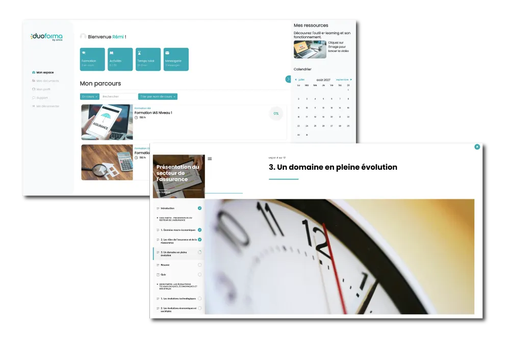 Chez duoforma®, nous vous proposons des formations de qualité sur une plateforme elearning intuitive et innovante. Conçues pour un apprentissage fluide et efficace, nos formations vous permettent de monter en compétences à votre rythme et à travers des supports variés.